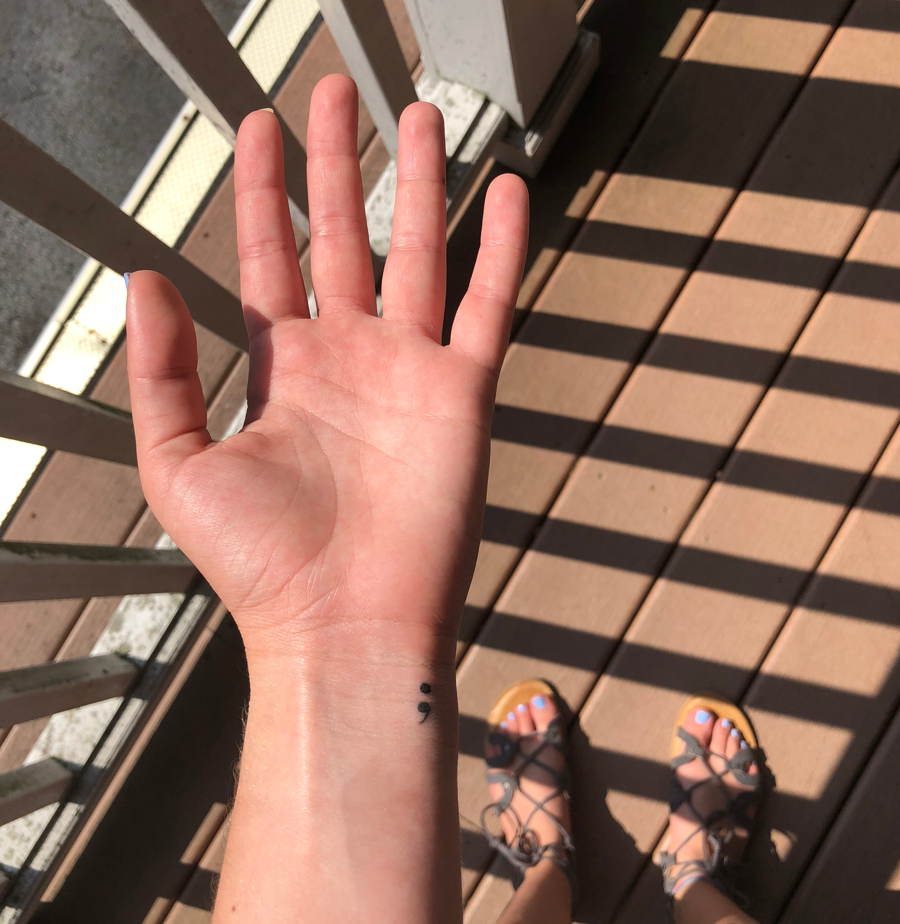 I got my semicolon tattoo a year after my depressive episode and manic upswing as part of my bipolar disorder. The semicolon tattoo is part of a national movement to raise awareness, prevent, and fight back against suicide, called Project Semicolon.